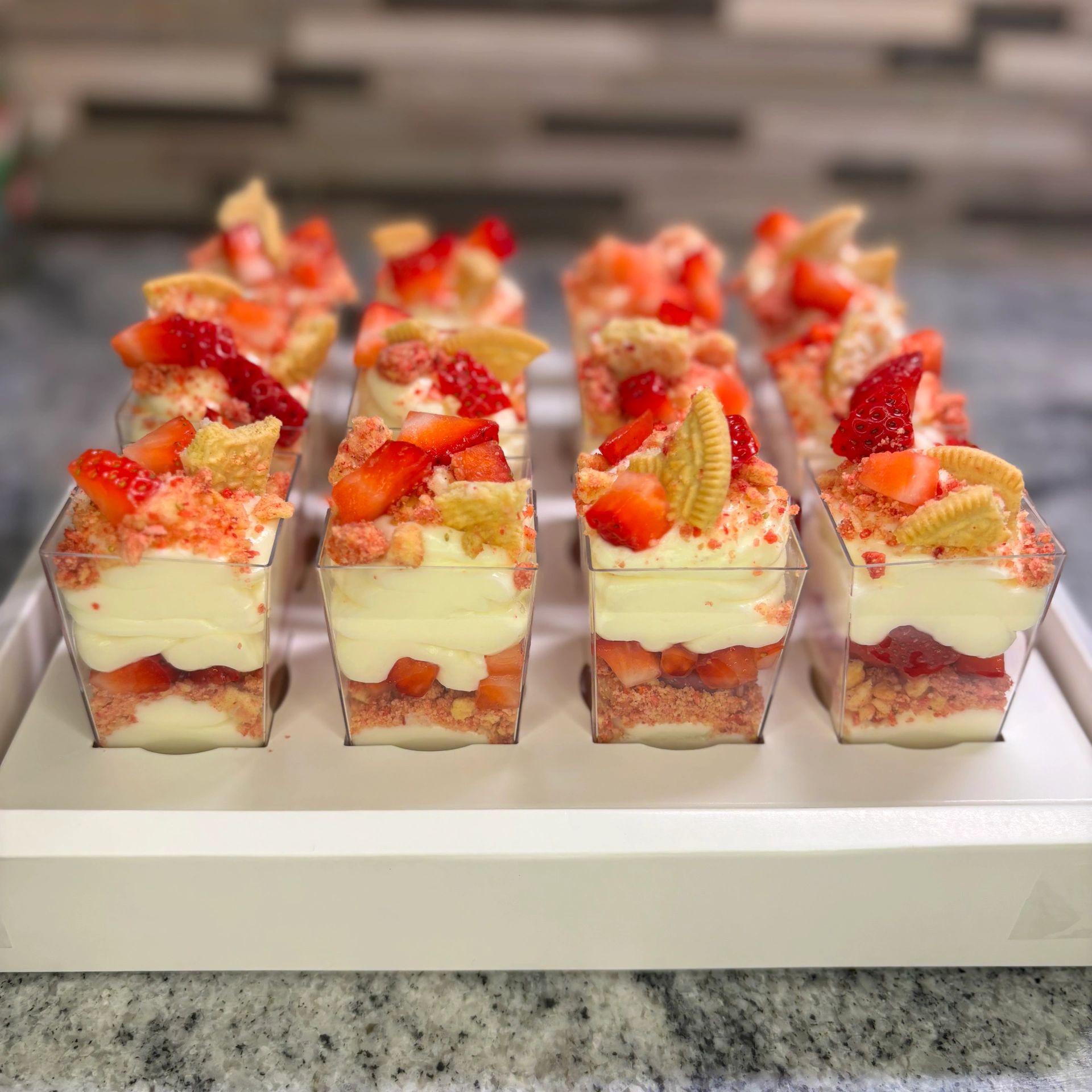 Our signature 8oz dessert jars are layered with creamy cheesecake, crumble, and fresh fruits.